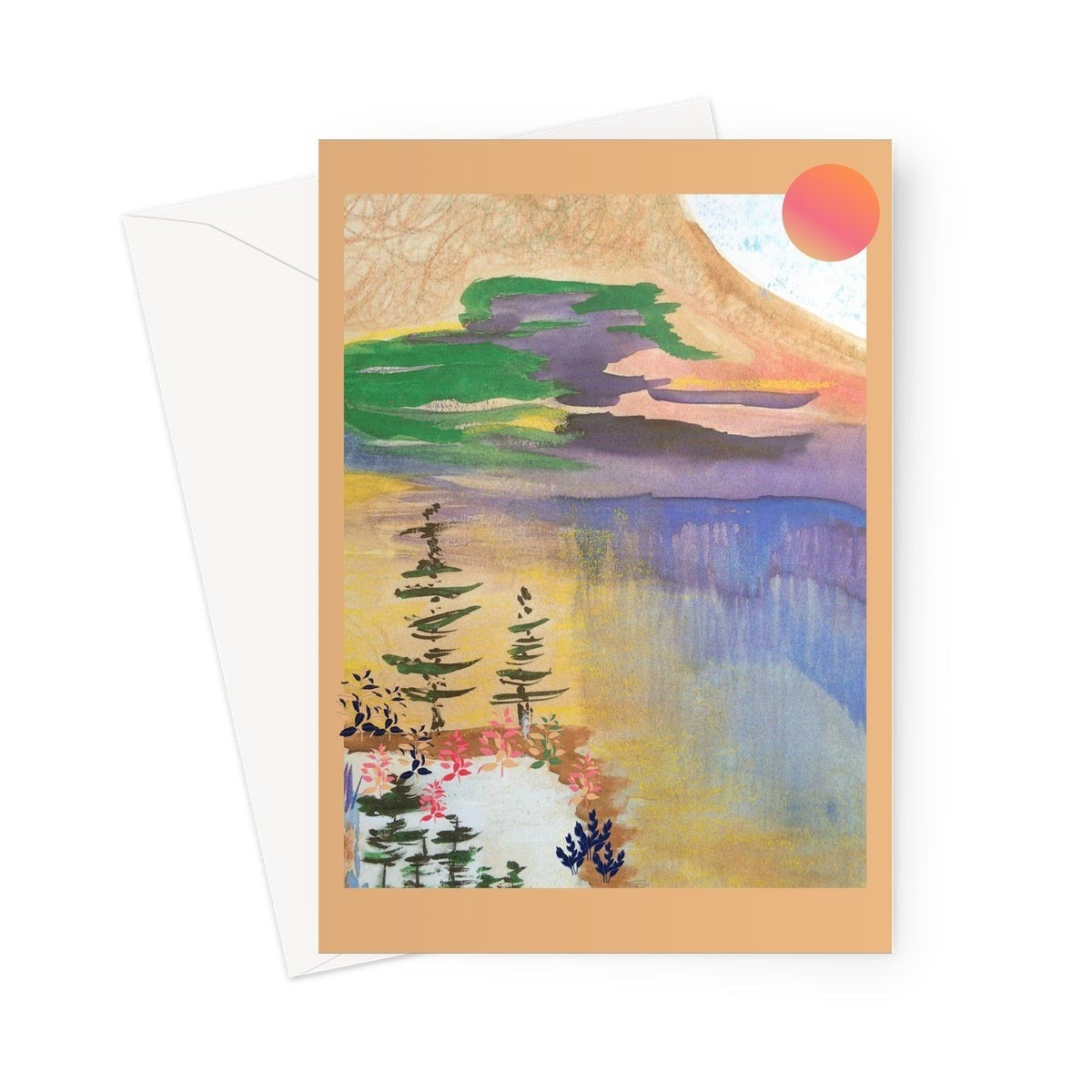 These greeting cards are printed on high-quality white Kromecote paper. They are BLANK on the inside so you can write your own personalized message. All are printed in Lexington, Kentucky, USA, by Beau Graphics, a veteran printing company with 40 years experience. Cards are glossy on the outside to make the colors shimmer -- and matte finish in the interior for ease of writing your individual message. Cards measure 5 x 6.5 inches and come with a bright white envelope. Available in packages of 5 cards of one design for $28.50, with 6% sales tax and FREE shipping in the United States!